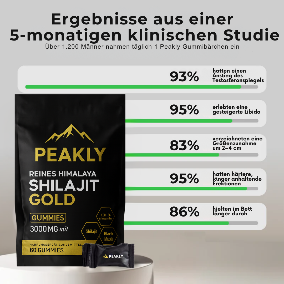 Unsere Peakly® Pure Shilajit Gummies sind nachweislich wirksam, um die allgemeine Gesundheit und das Energieniveau zu verbessern.